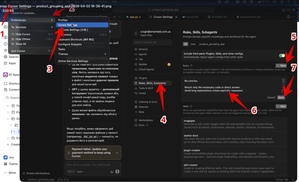 Cursor значно прискорює розробку, але неправильне використання може швидко вичерпати AI-ліміти. Цей документ описує кращі практики для розробників, щоб ефективно використовувати AI без втрати якості коду. Без дотримання рекомендацій ліміт $10 може бути використаний за 1–3 дні. При правильному використанні той самий ліміт може вистачити на весь місяць.